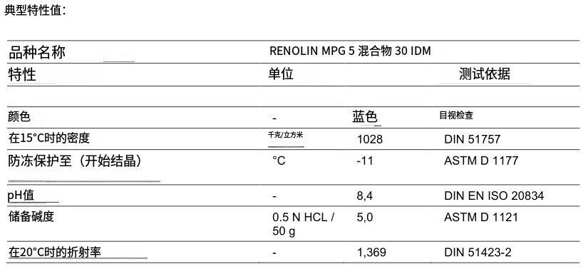 福斯FUCHS RENOLIN MPG 5 MIX 30 IDM即用水-乙二醇冷却液,适用于基于单丙二醇的工业应用,添加了添加剂。